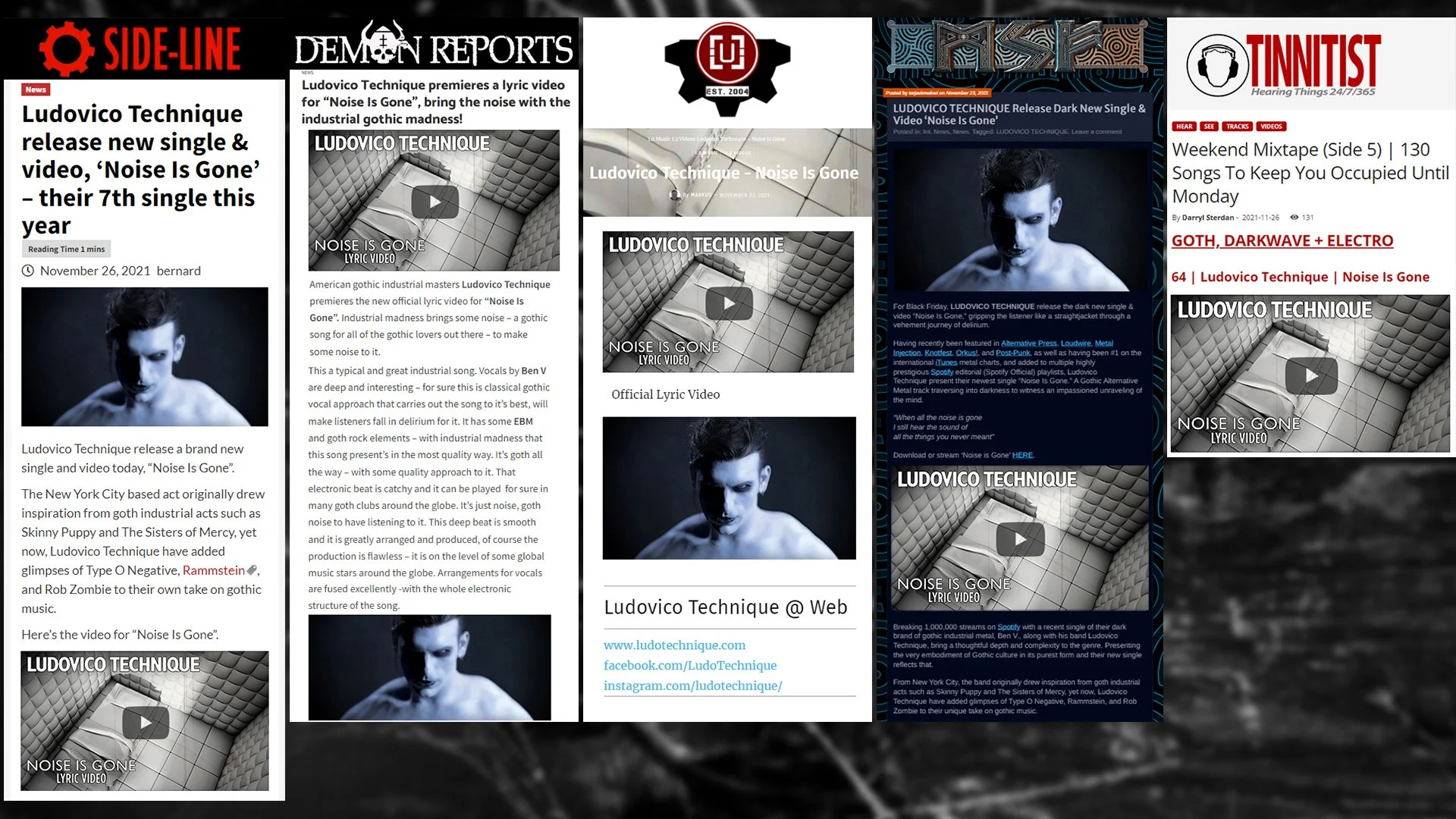 Worldwide media coverage for the Ludovico Technique single "Noise is Gone"